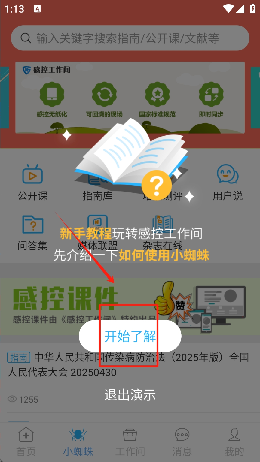 1、开始了解应用:点击“开始了解”按钮,进入新手教程。