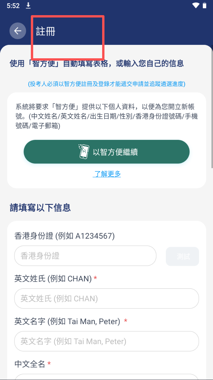 4、按照提示填寫香港身份證、姓名等信息,完成註冊流程。
