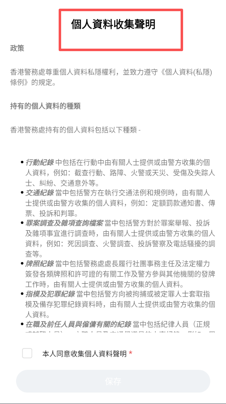 1、仔細閱讀並同意個人資料收集聲明,勾選同意選項。