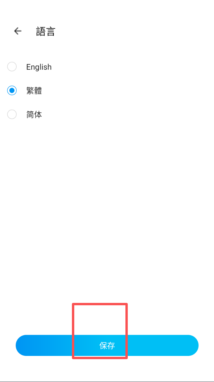 2、點擊右上角語言選項,選擇繁體中文或其他語言,點擊保存。