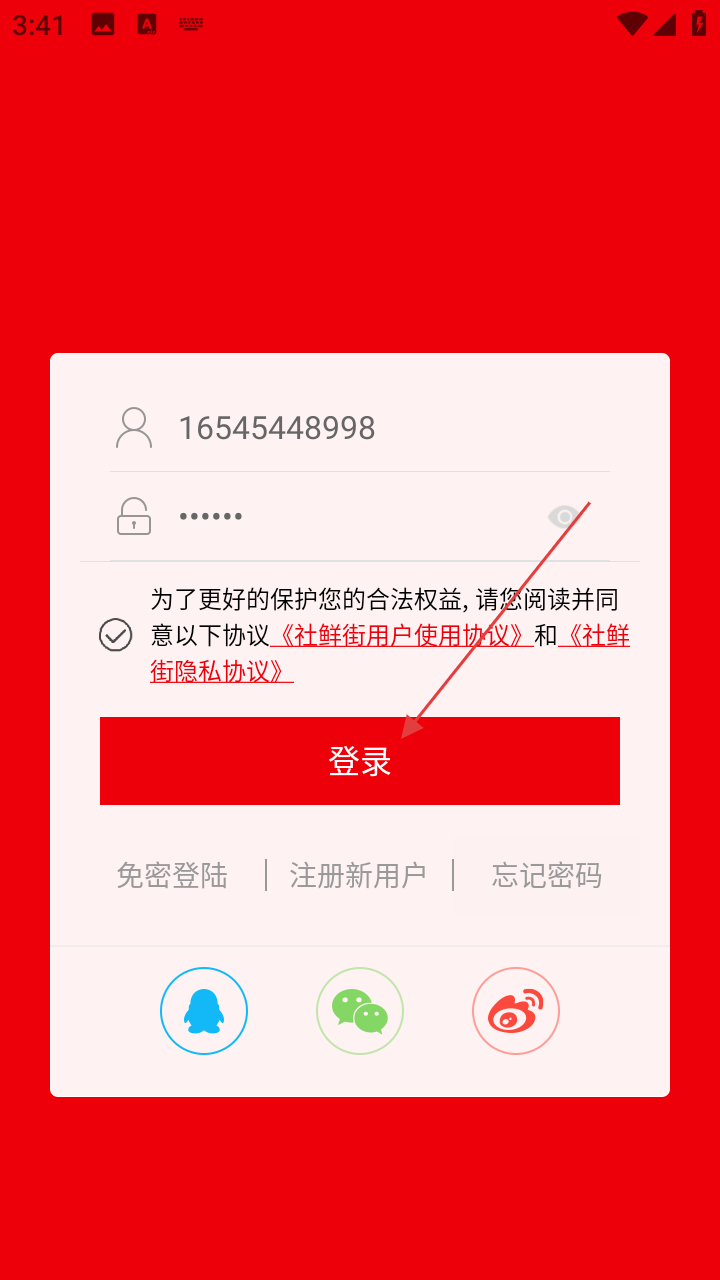 4、信息填写完成后,勾选协议,点击【登录】按钮,尝试登录APP。