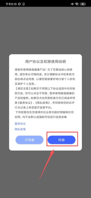 1.先在弹出的用户协议和权限说明窗口点“同意”