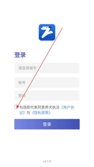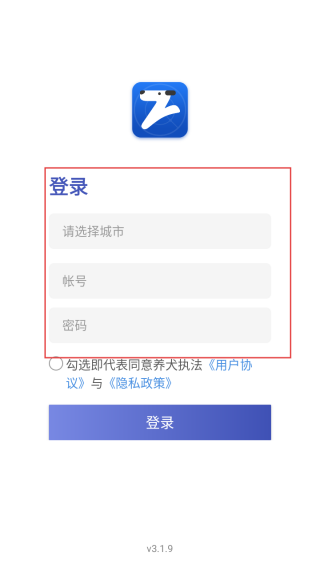 3、再此处选择城市以及输入账号和密码点击登录即登录成功。