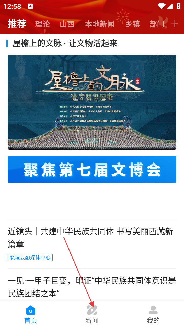 1、在应用首页,点击底部【新闻】,进入新闻板块找本地内容。