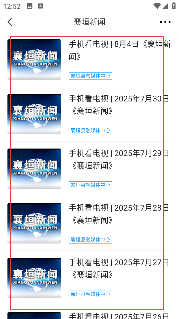 3、看电视页选【襄垣电视】或【襄垣新闻】,以襄垣新闻为例,进入新闻列表。