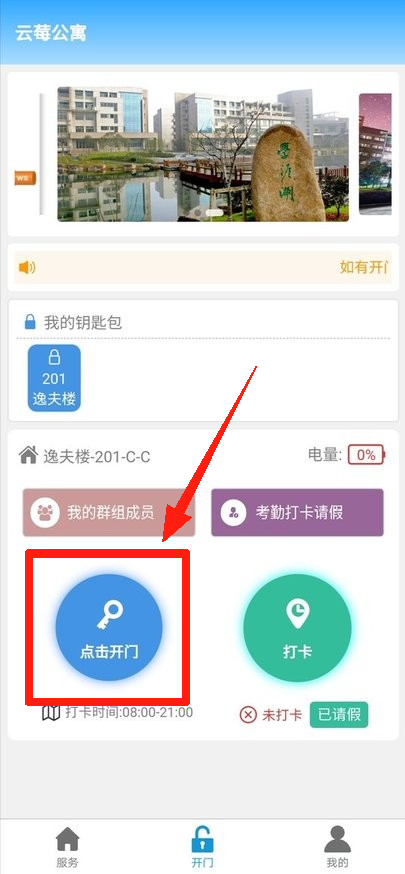 3、在首页点击“点击开门”按钮,使用智能门锁功能。