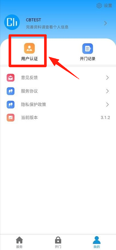 2、在“我的”页面点击“用户认证”图标,进行身份验证。