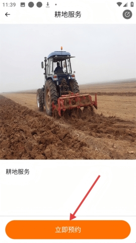 3、在耕地服务页面,点击【立即预约】按钮,可预约耕地服务。