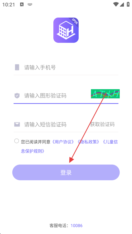 3、在登录页,依次输入手机号、图形验证码,点击【获取验证码】并输入短信验证码。