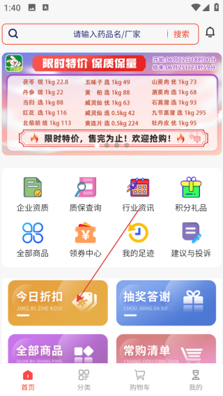 1、打开应用进入首页点击今日折扣。
