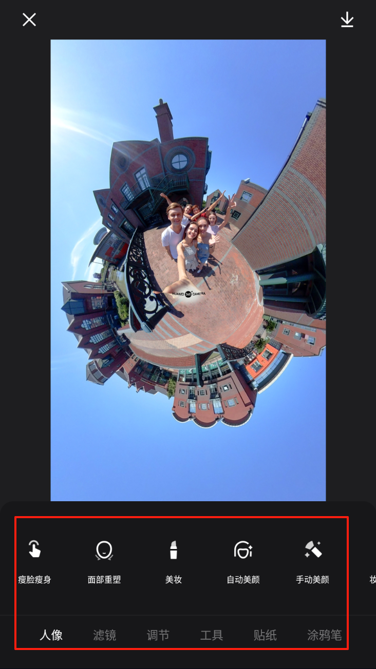 3、接下来,使用编辑工具调整照片效果。选择“人像”、“滤镜”等工具进行编辑。