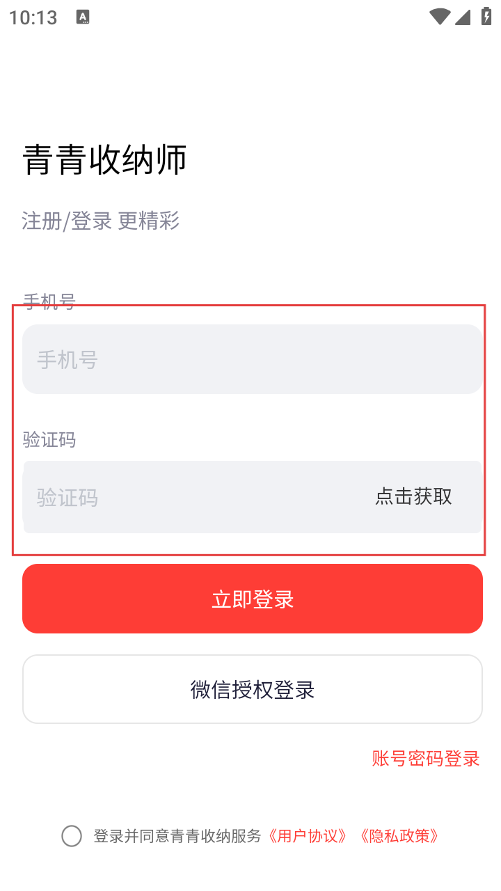 2、进入注册/登录页面,输入【手机号】,点击【获取验证码】,输入验证码后点击【立即登录】。