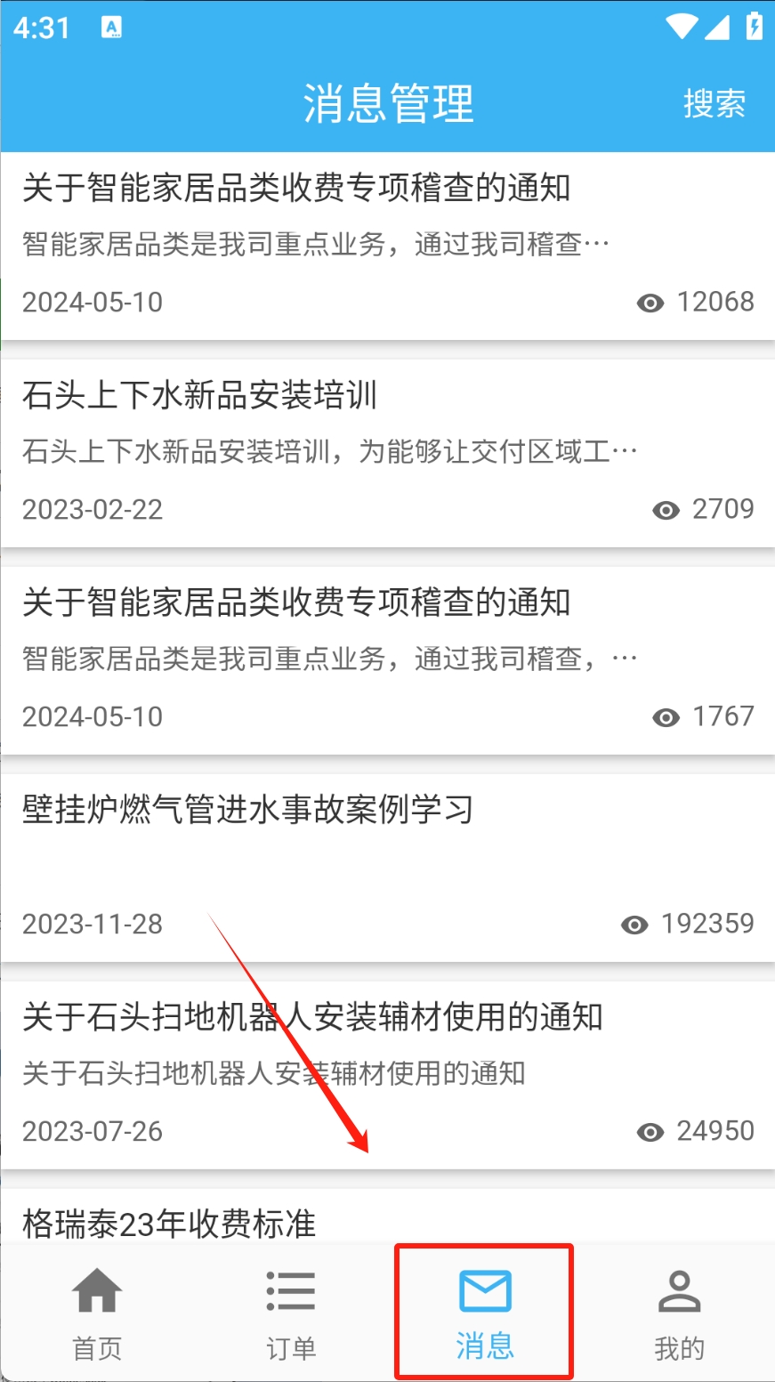 3、点击“消息”图标,查看最新公告和通知。