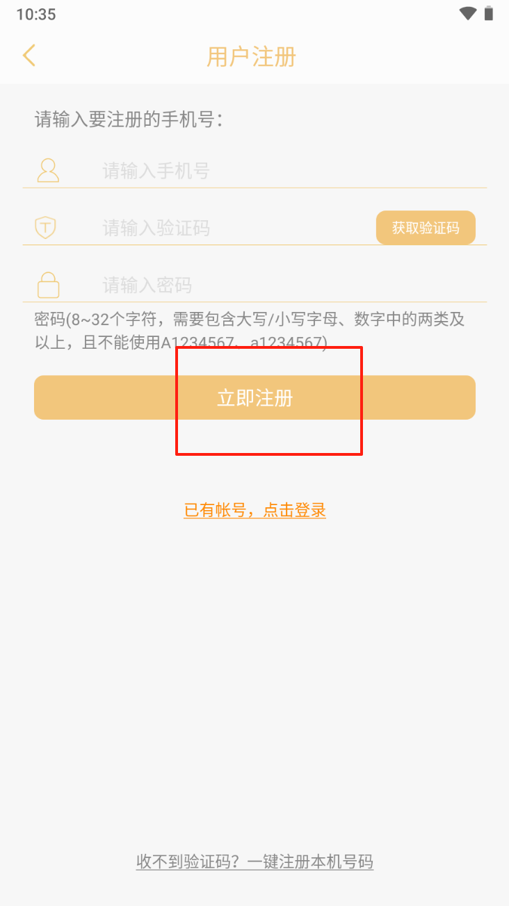 3、填写注册信息:输入手机号、验证码和密码,点击“立即注册”完成注册。