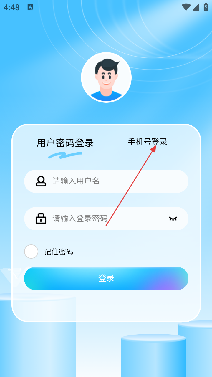 2、在登录页,选择【手机号登录】,切换登录方式。