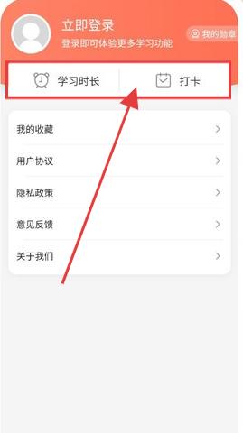 2、在个人主页可以查看学习时长,点击【打卡】。