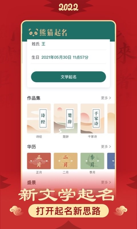 熊猫起名是一款专业的在线起名软件,熊猫起名的优势在于其专业性和可靠性。该软件采用了先进的算法和数据分析技术,能够根据父母的信息为宝宝生成一个寓意美好、吉祥如意的名字。此外,熊猫起名还提供了大量的名字库和名字解释,让父母能够更好地了解每个名字的含义和背景。感兴趣的小伙伴赶快下载最新的软件版本吧。