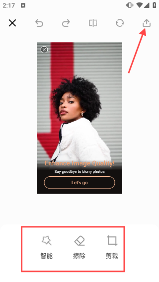 3、最后可以自由选择智能、擦除、剪裁不同编辑按钮,完成后还可以点击分享。