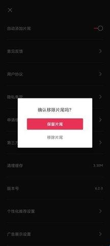 2、在设置中找到“自动添加片尾”功能,关闭该选项。