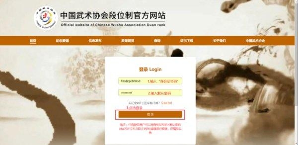 访问中国武术段位系统官网(dw.wushu.com.cn/login/)或通过公众号进入。
