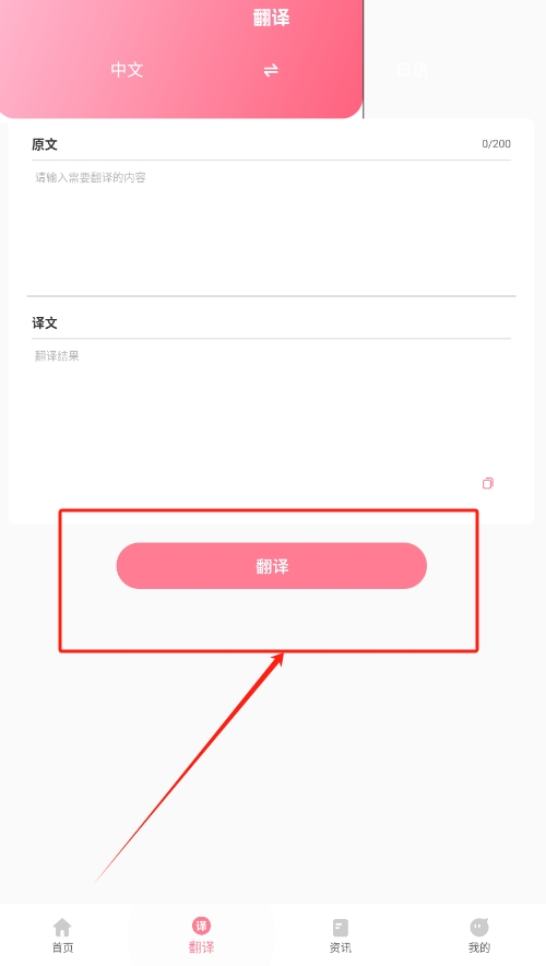 3、最后,强大的日语翻译功能,输入原文内容,即可快速翻译成日语或汉语,便于轻松读懂。