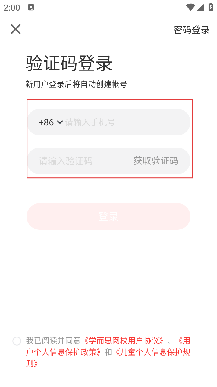 4、在验证码登录页面,输入手机号码和验证码,勾选同意相关协议后点击【登录】,即可完成报名流程。