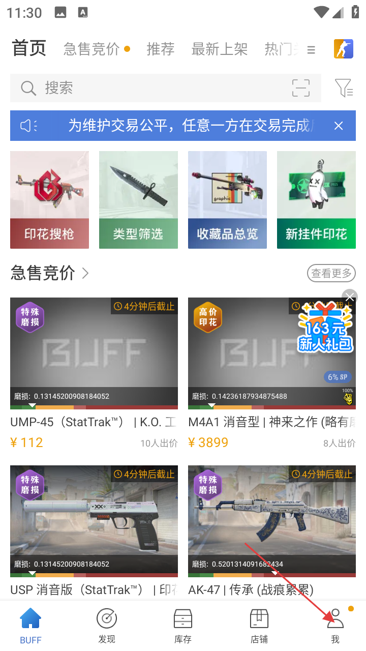 1、在【BUFF】首页,若要进入个人相关设置,点击底部导航栏的【我】选项。