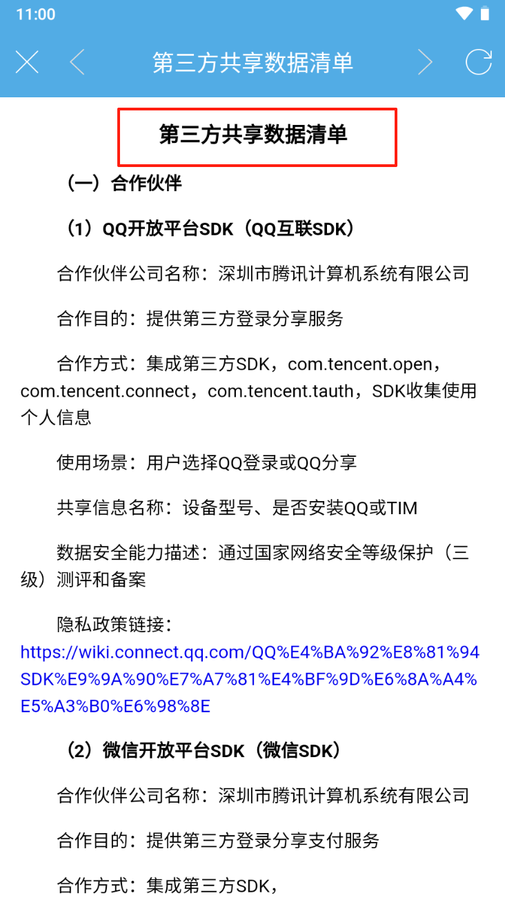 3、了解第三方数据共享:阅读“第三方共享数据清单”,了解数据共享的合作伙伴和目的。