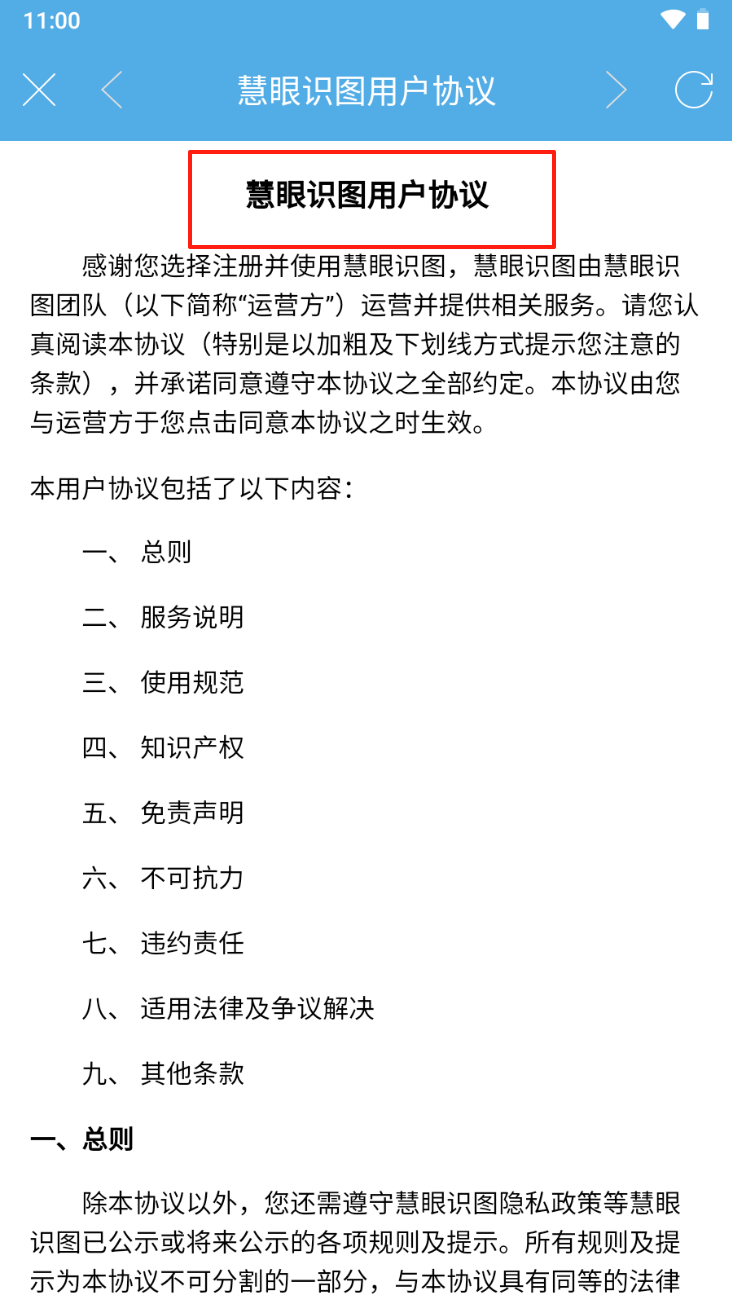 2、查看用户协议详情:点击“慧眼识图用户协议”标题,了解协议的具体内容和条款。