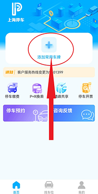 1、用户登录上海停车app后,点击首页的“+”即可进入车牌号添加页面。