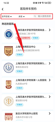 之后用户可以选择自己要预约的医院,点击上方可以选择区域、类型,还可以自己搜索医院名称进行查找。