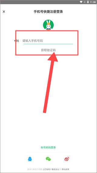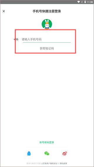 2、跳转登录页面后输入手机号点击【获取验证码】。