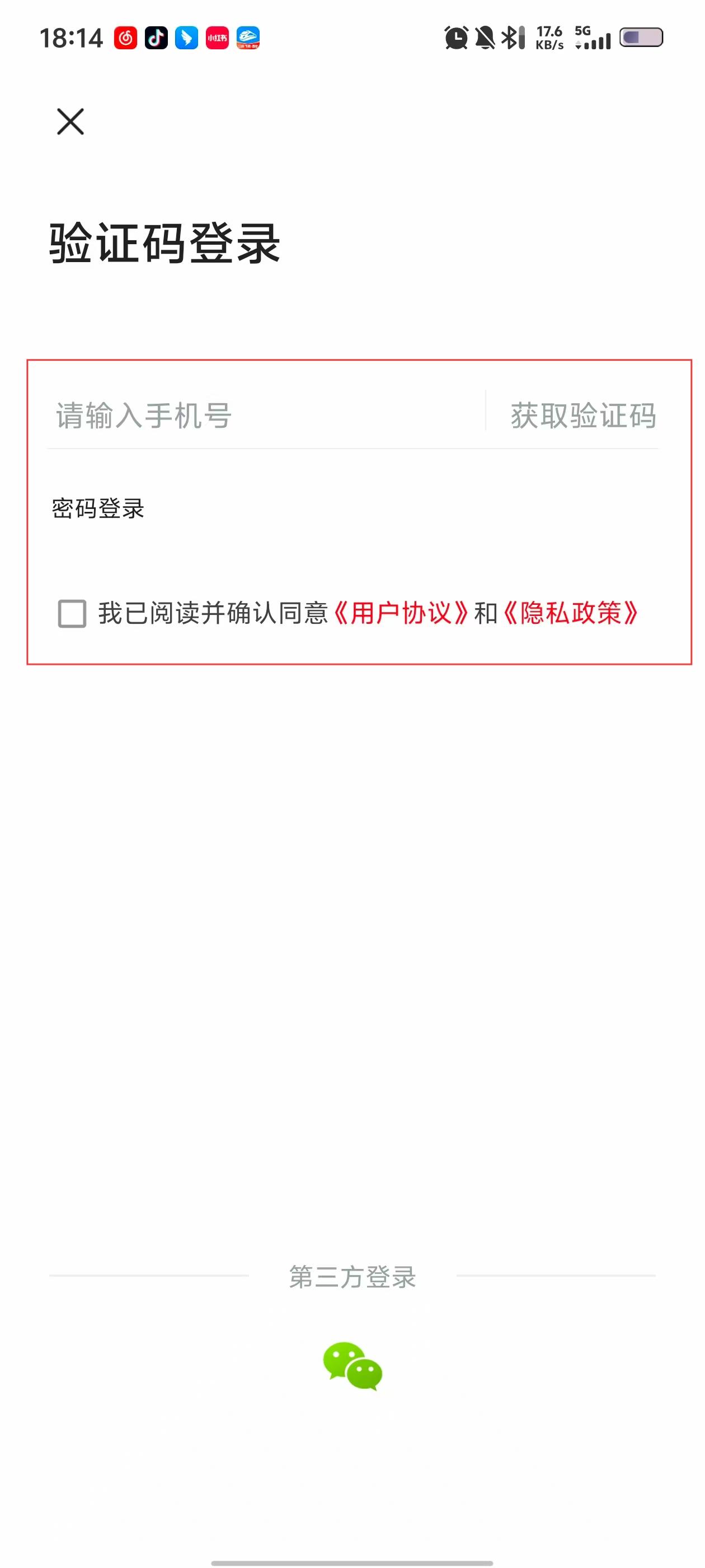 4、需登录时,选验证码或第三方方式完成登录。