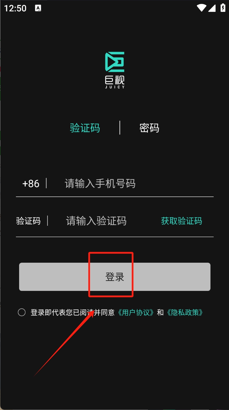 如何登录Juicy巨视并同意用户协议和隐私政策?
