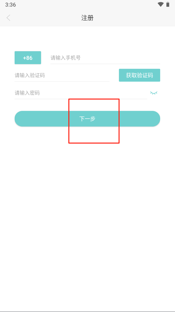4、输入手机号、验证码和密码,点击“下一步”完成注册。