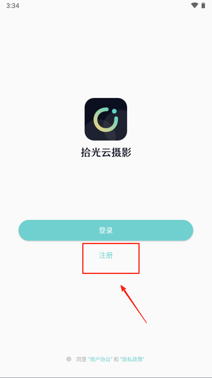 1、点击“注册”按钮开始创建拾光云摄影账户。