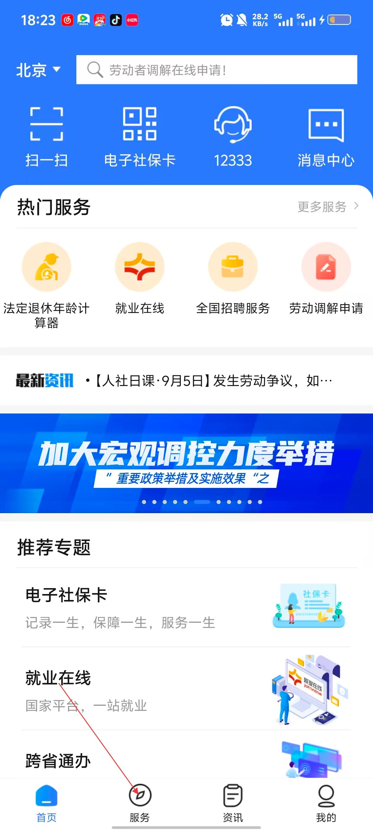 打开掌上12333手机app,在首页点击电子社保卡;