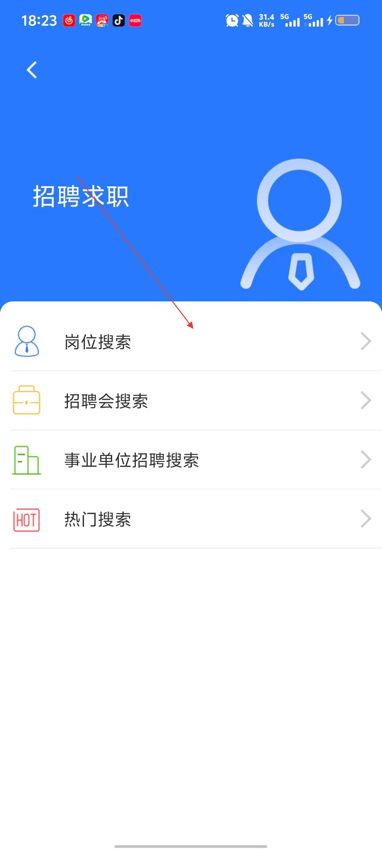 3、在招聘求职界面,点击【岗位搜索】选项,进入岗位搜索设置页面。