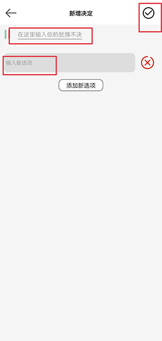 3、将犹豫不决的事项填写在上方,将预备选项填写在下方,完成后点击右上角保存即可
