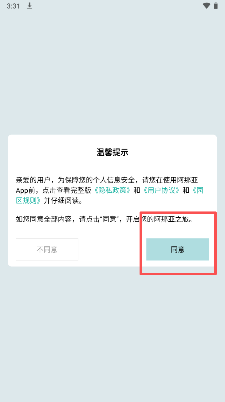 1、在 “温馨提示” 弹窗里,点击 “同意” 按钮,进入后续页面。