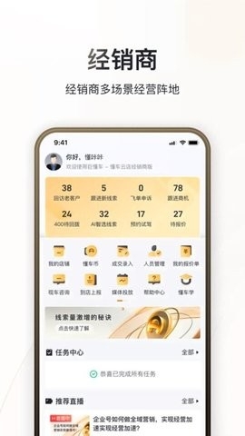 1、新车经销商:巨懂车app提供线上营销、线索管理和数据分析服务,助力商家获取客户并促进交易转化。