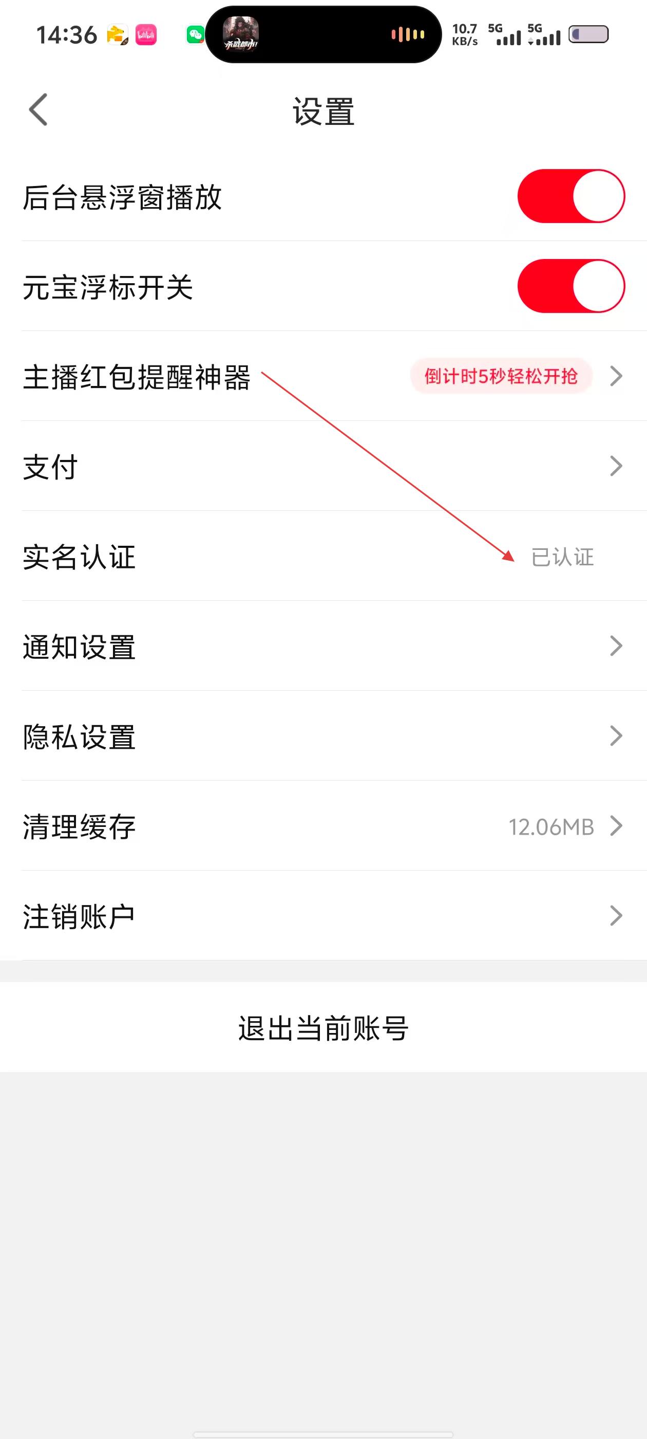 4、进入【设置】页面,点击【实名认证】即可进行认证流程。