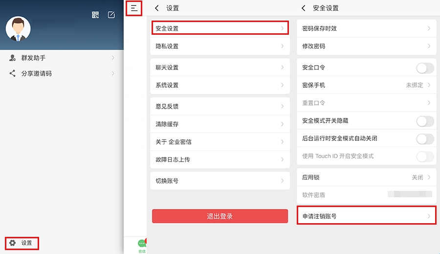 查看是否使用了企业密信APP登录;