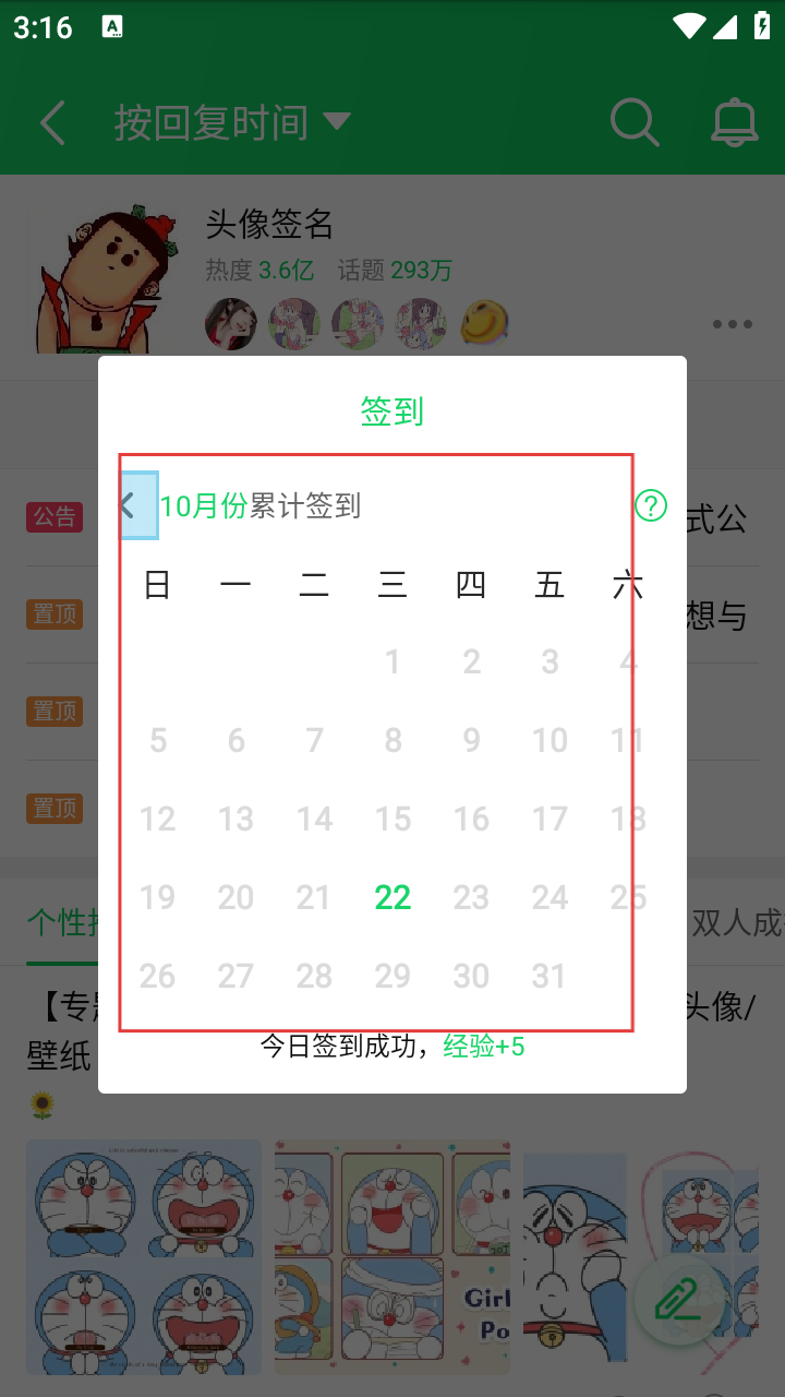 4、点击签到过后即可查看当月的签到情况。