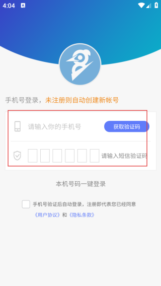 2、进入登录界面输入手机号和验证码。