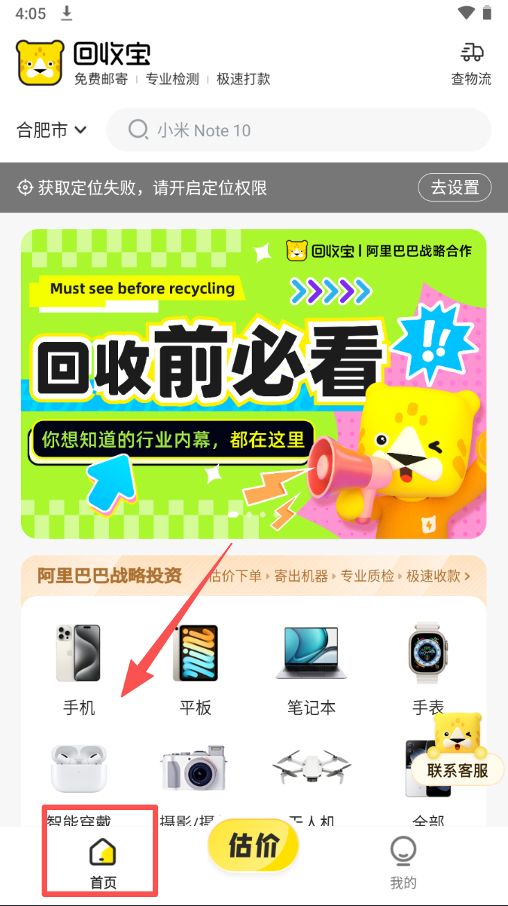 2、选择要回收的设备类型。在首页点击相应设备图标进行选择。