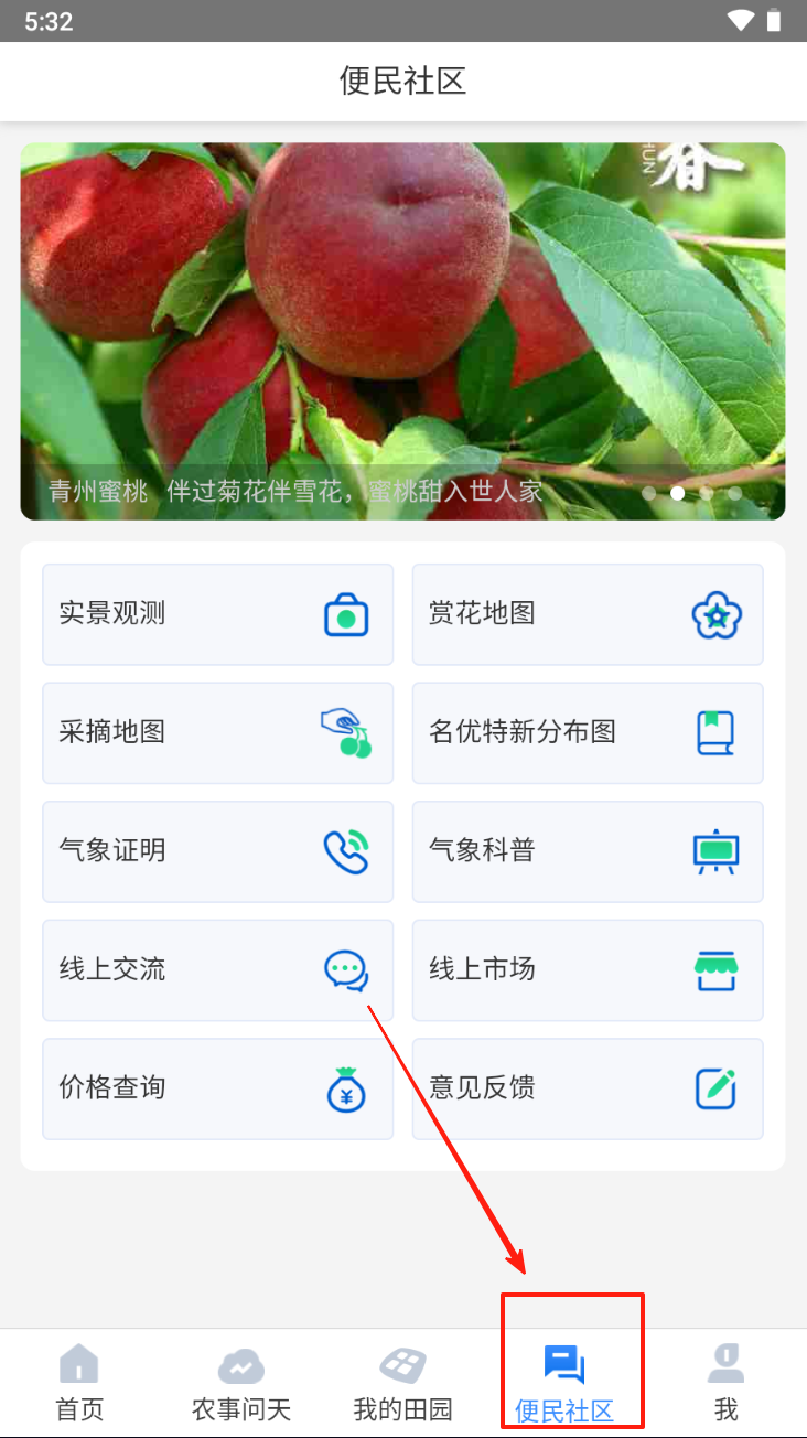 4、访问便民社区。点击“便民社区”图标,获取更多农业相关信息和建议。