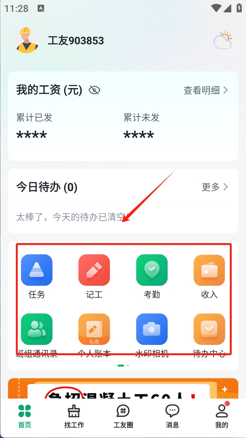 1、在“我的”页面,查看“我的工资”部分,了解已发和未发工资情况。