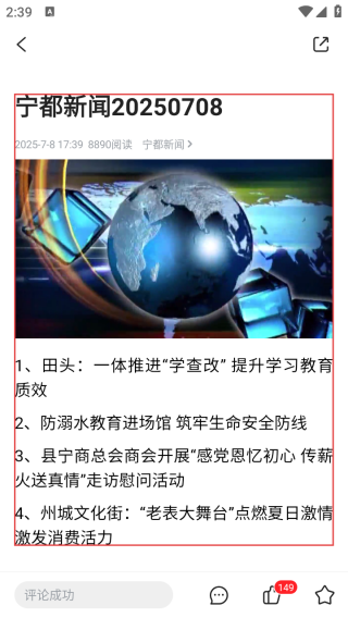 3、点击视频进入详情,查看【宁都新闻20250708】具体内容,包含学查改、防溺水等资讯。