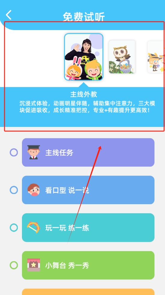 2、进入主界面后,根据孩子的兴趣选择不同的英语课程,丰富的学习资源让他们在各类主题中探索。